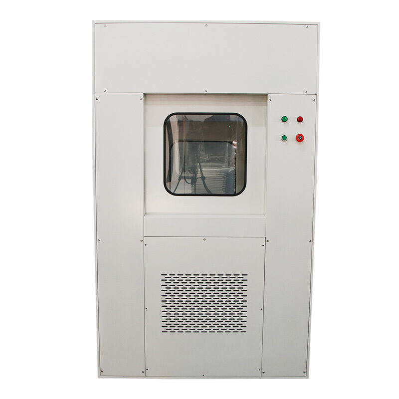 에어 샤워 패스 박스는 화물 입출입으로 인해 발생하는 많은 양의 먼지 입자를 줄여주며, 에어 샤워 이송 창을 통해 고효율 필터로 여과된 깨끗한 공기 흐름이 회전식 노즐을 통해 다양한 방향에서 화물에 분사되어 먼지 입자를 효과적이고 신속하게 제거합니다. 제거된 먼지 입자는 1차 및 고효율 필터를 통해 여과되어 에어 샤워 구역으로 재활용됩니다.